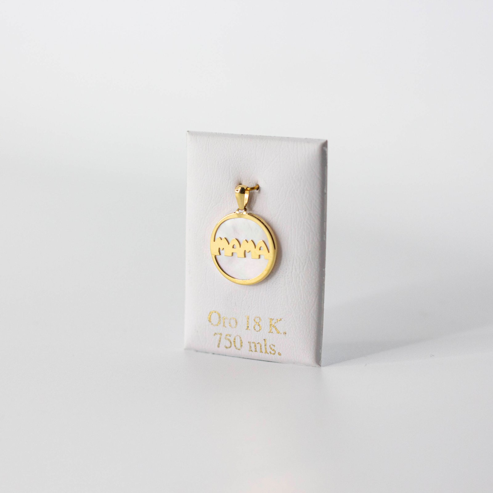 Especificaciones Técnicas: Colgante de nácar y oro de 18 ktes de 16 milímetro de diámetro.