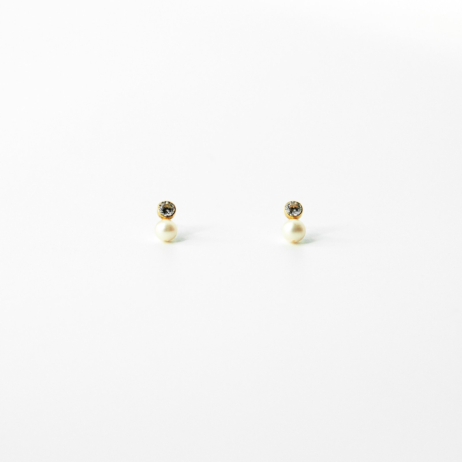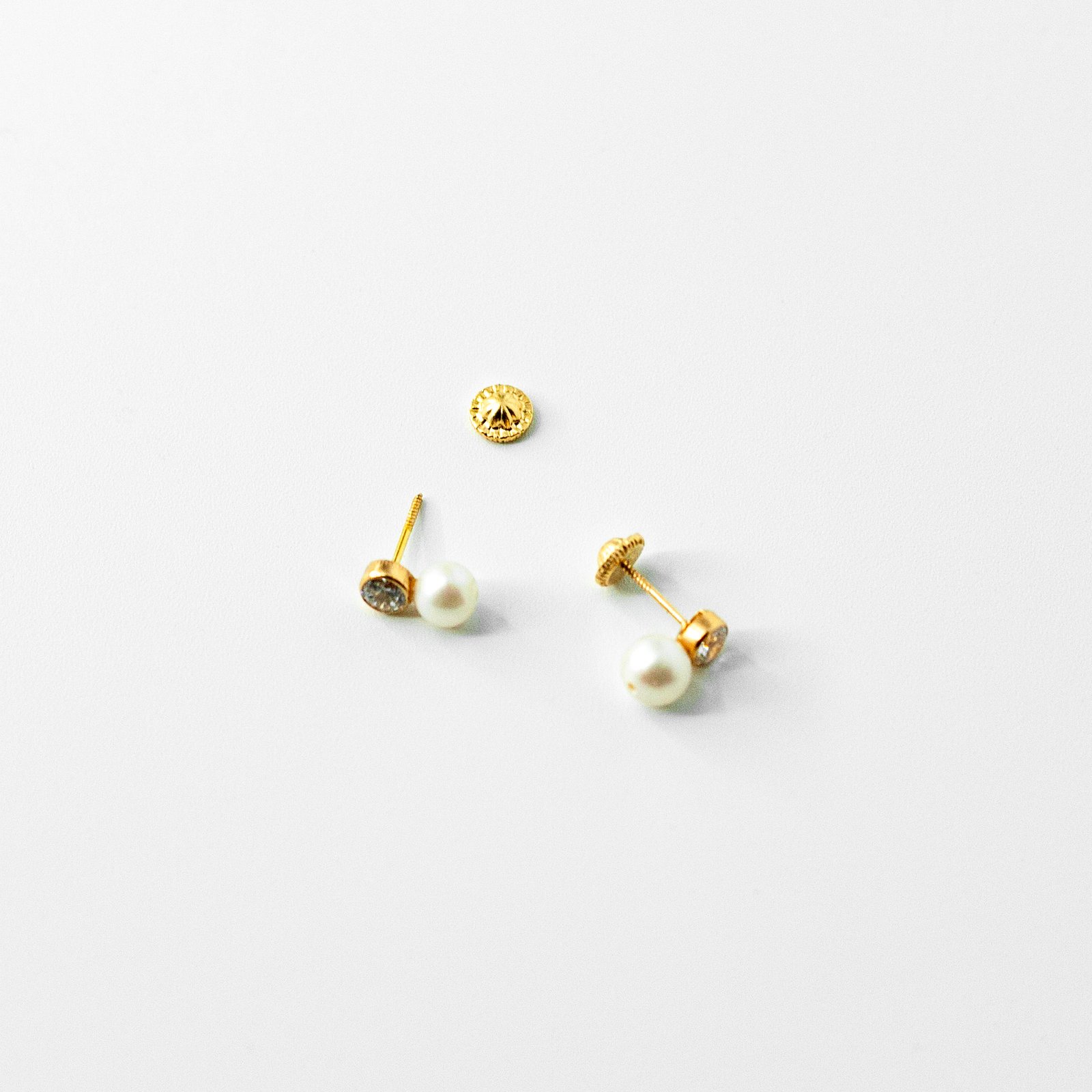 Especificaciones Técnicas: Pendientes con una circonita y una perla debajo, fabricados en oro de 18 Ktes, con cierre de tuercas.