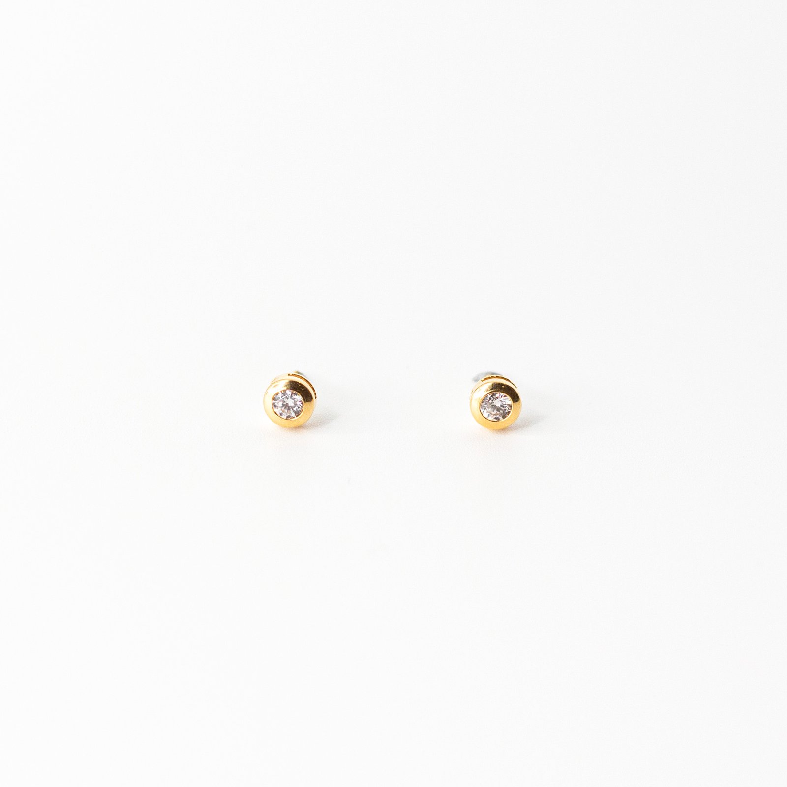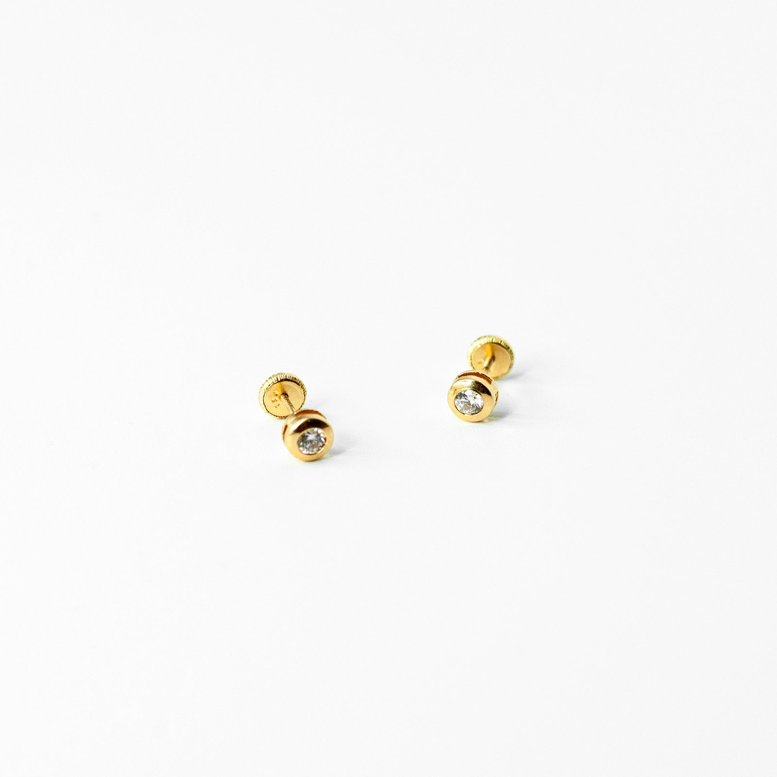 Especificaciones Técnicas: Pendiente chatón redondos con 1 circonitas de 3 mm forrados fabricados en oro de 18 Ktes, con cierre de tuerca.