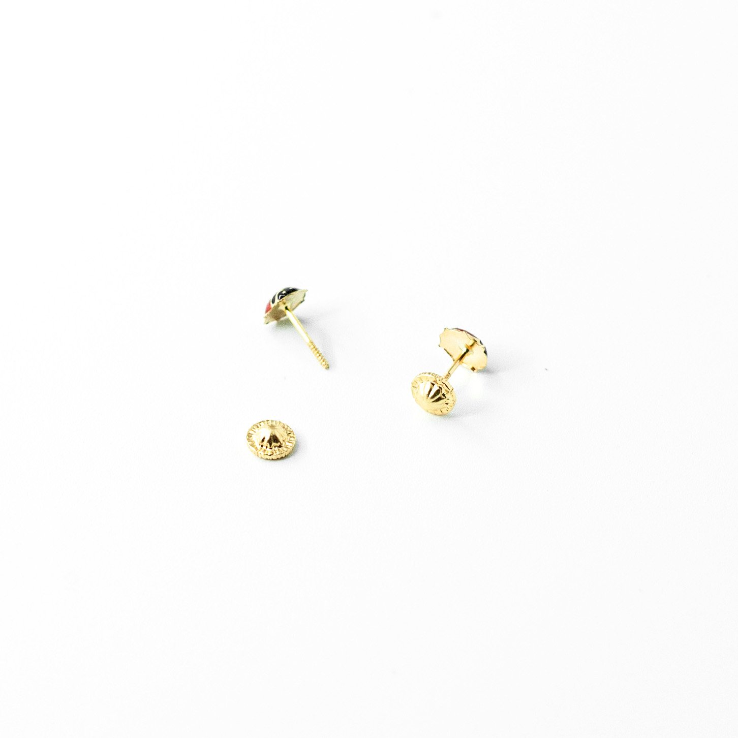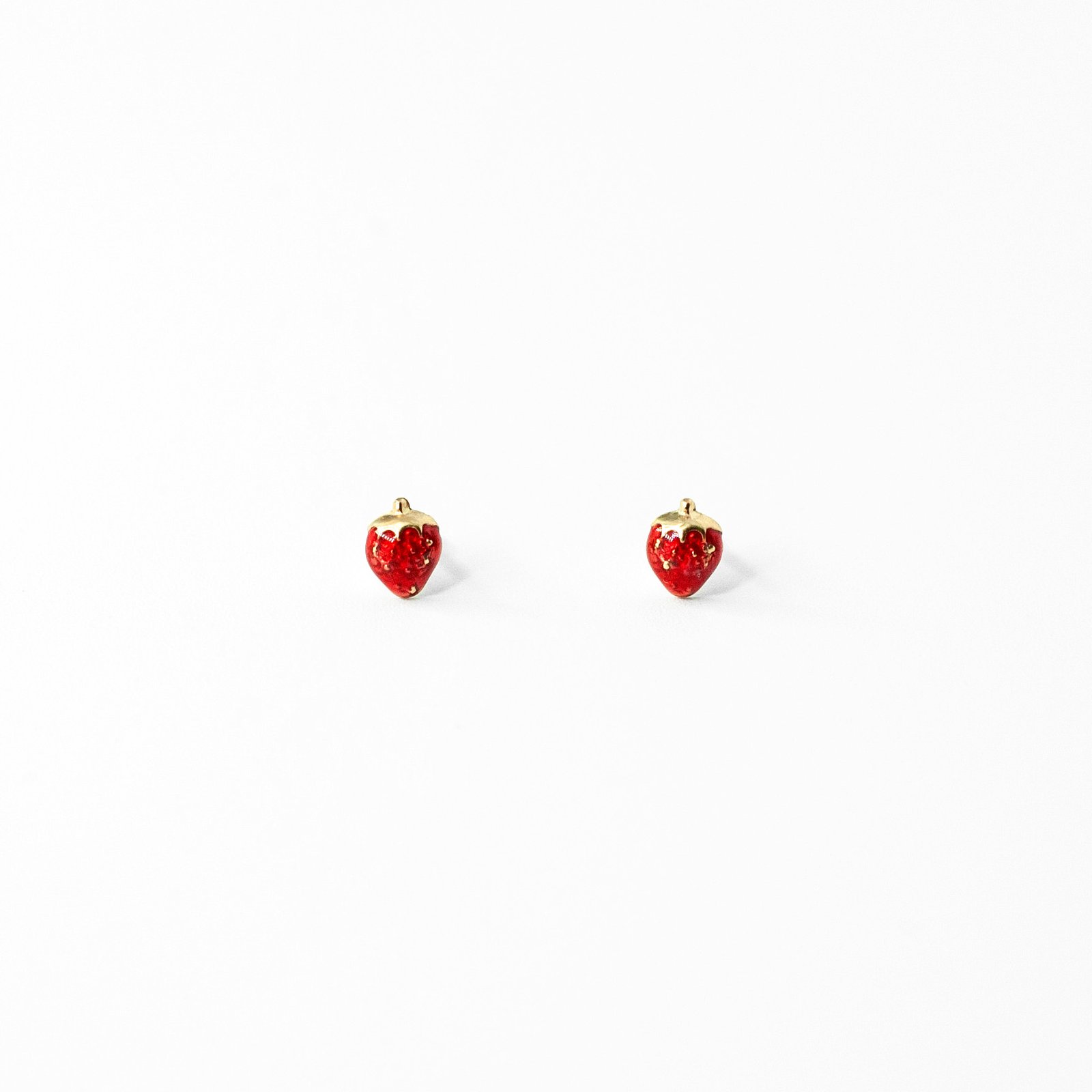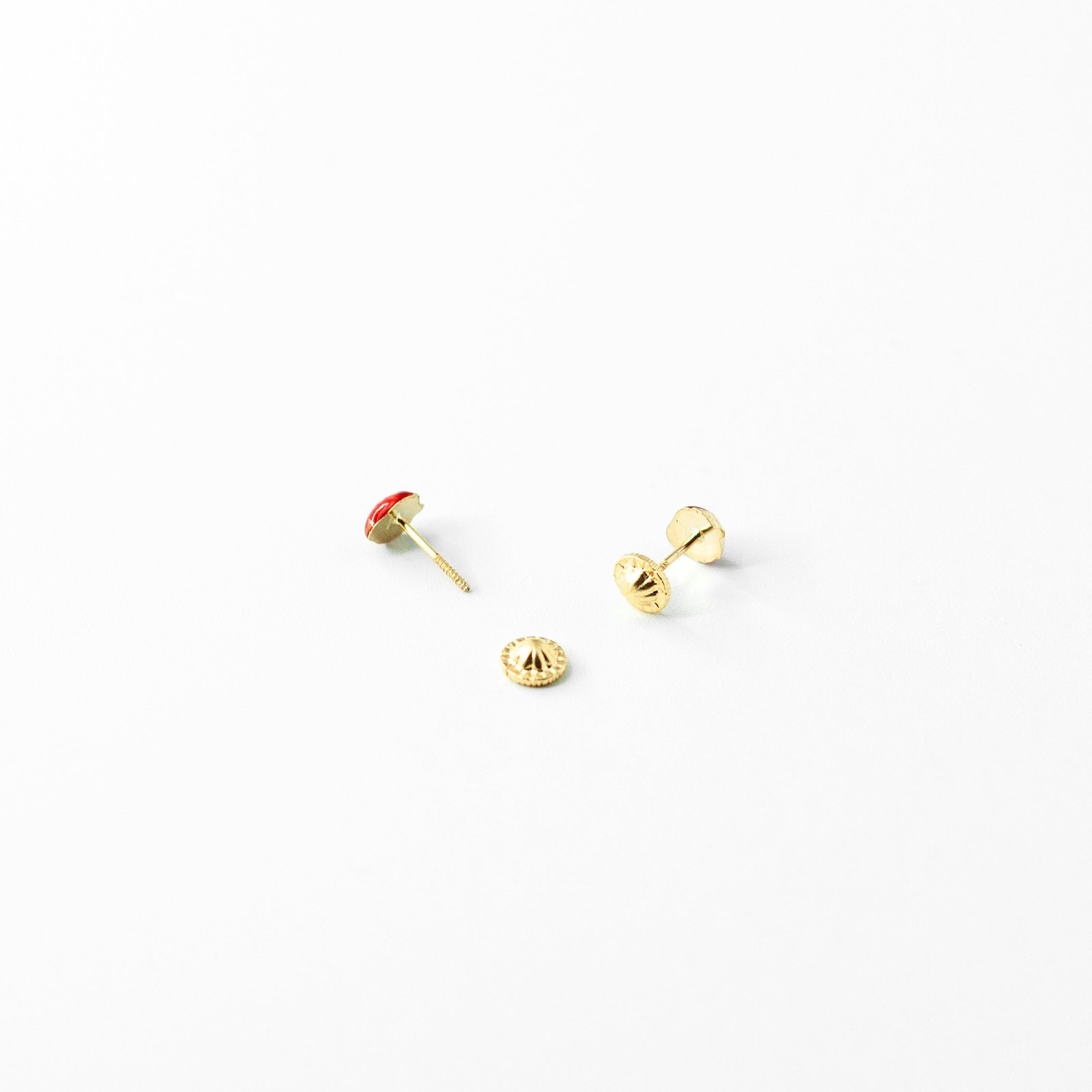 Especificaciones Técnicas: Pendientes de niña forrados con forma de fresa fabricados en oro de 18 Ktes,con cierre de tuerca.